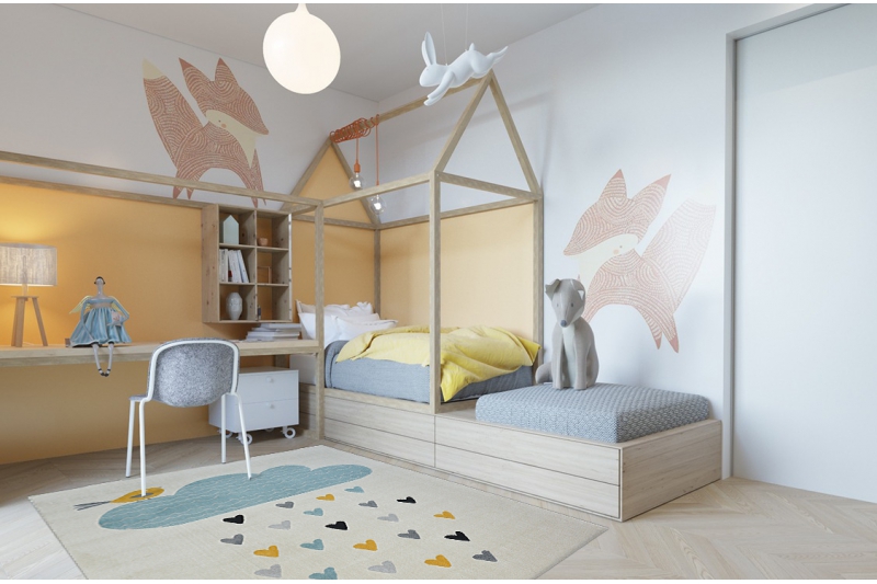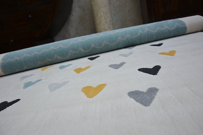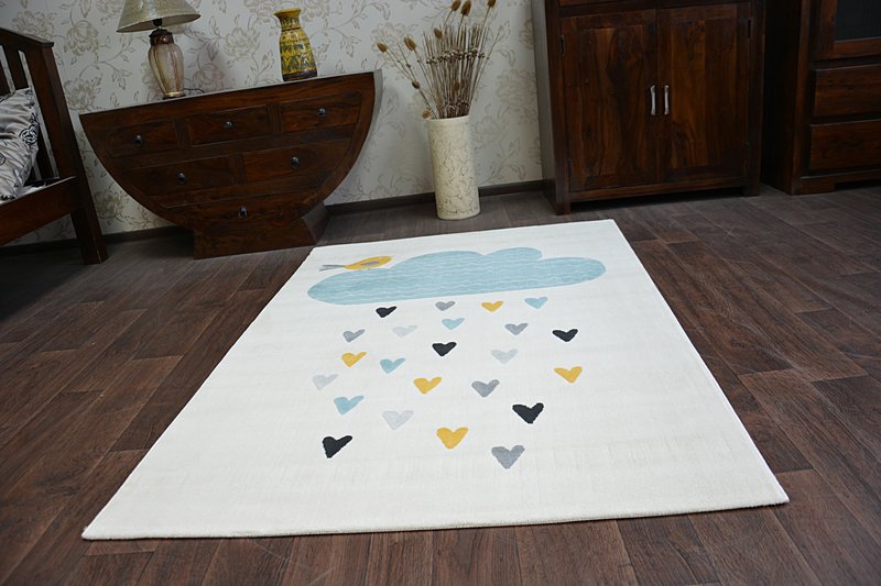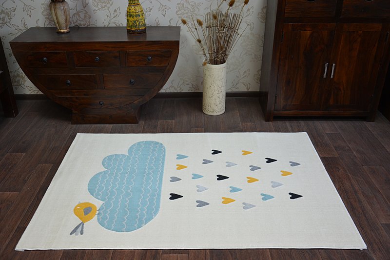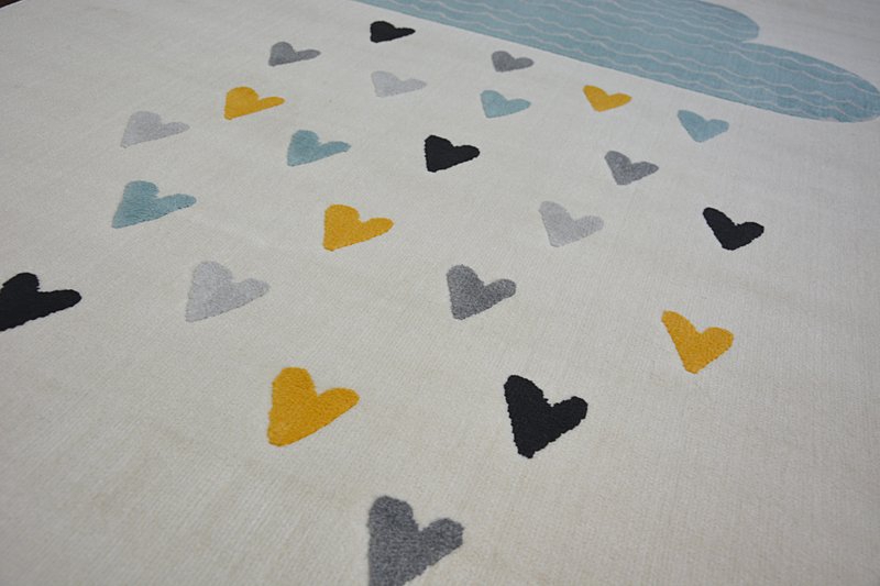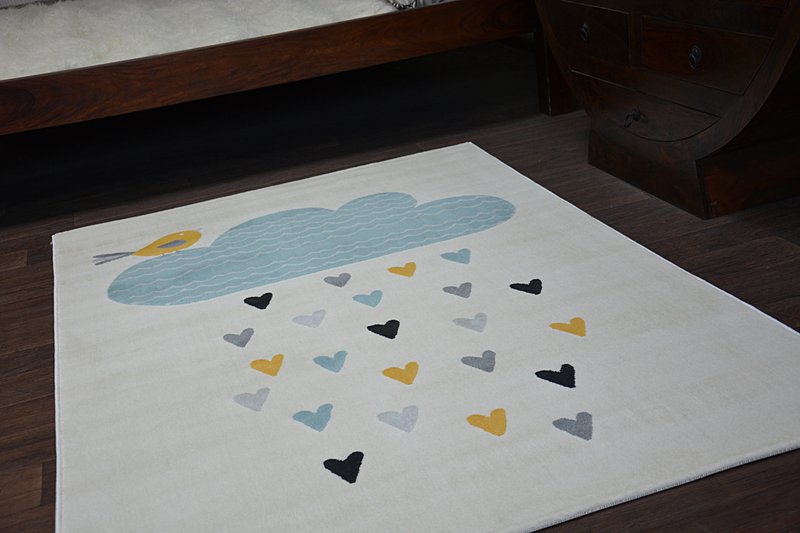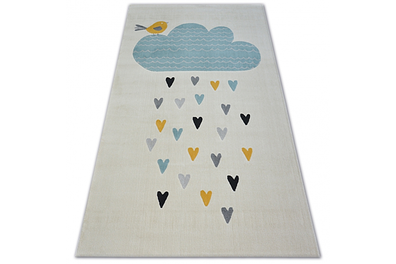 Tæppe PASTEL 18409/062 - Skyer hjerter Fugl fløde turkis grå