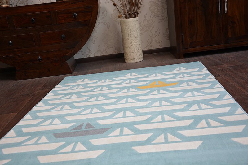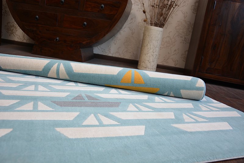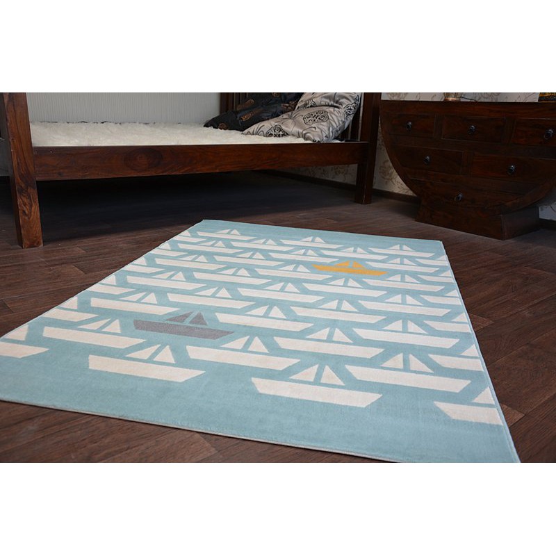 Tæppe PASTEL 18411/032 - Sejlbåde Både turkis fløde grå guld