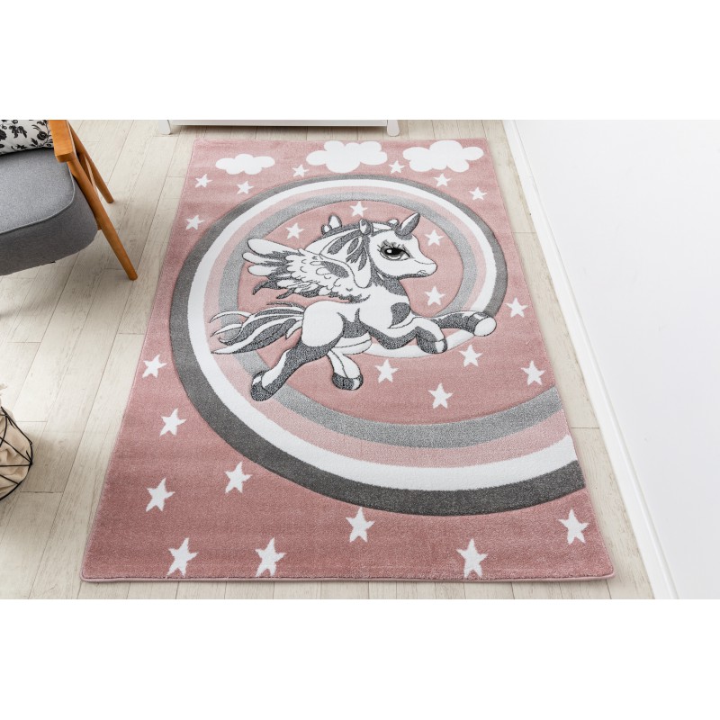 PETIT PONY-modellen vil helt sikkert glæde enhver lille pige. Motivet af en enhjørning på en lyserød baggrund med fine hvide stjerner giver indretningen et eventyrligt præg. Brugen af moderigtige pastelfarver vil tilføre et strejf af modernitet og elegance, uden at det fjerner elementet af barnlig sorgløshed.