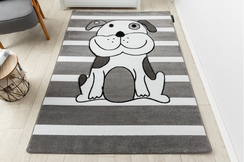 PETIT PUPPPY-modellen vil helt sikkert glæde både små piger og drenge. Et charmerende motiv af en hund kombineret med sarte nuancer af grå nuancer vil skabe en eventyrlig atmosfære i indretningen. Brugen af moderigtige pastelfarver vil tilføre et strejf af modernitet og elegance, uden at fjerne elementet af barnlig sorgløshed.