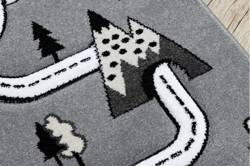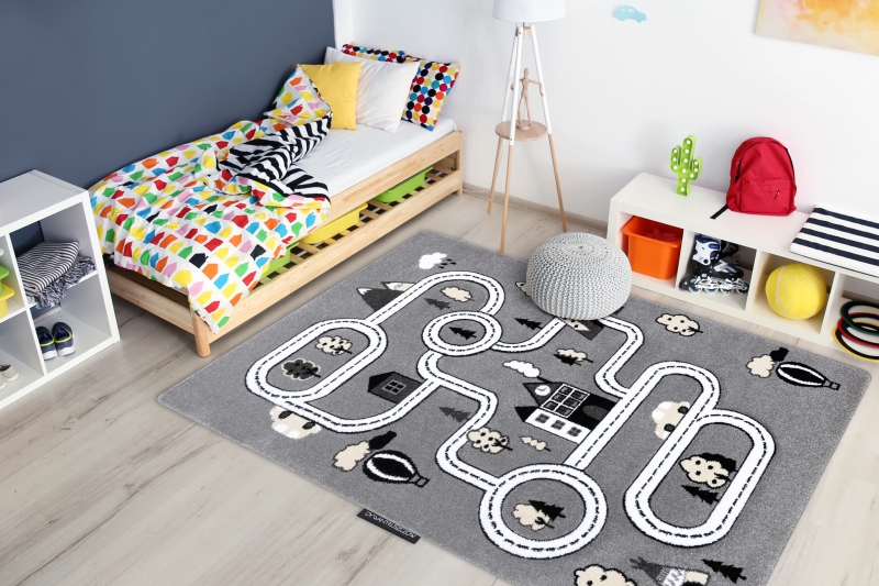 PETIT TOWN-modellen vil helt sikkert glæde både små piger og drenge. Motivet af en by og gader kombineret med sarte nuancer af grå nuancer vil opmuntre til at lege i timevis. Brugen af moderigtige pastelfarver vil tilføre et strejf af modernitet og elegance uden at fjerne elementet af barnlig sorgløshed.